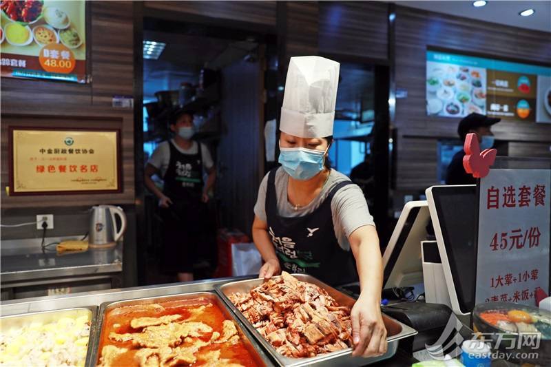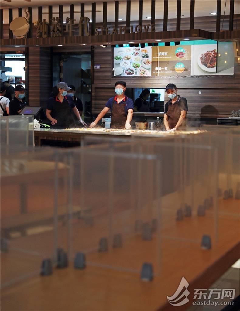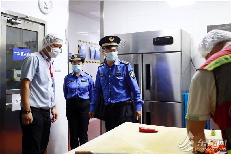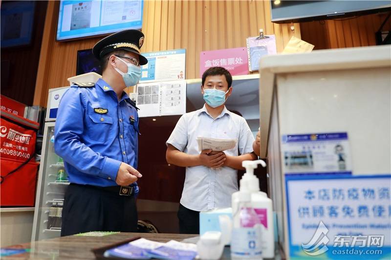 在国家会展中心美食广场,城管执法队员对餐饮商户进行了检查,提醒商户严格自查,执行好垃圾分类,配备足够的防疫物资。目前,国家会展中心共有约60家常驻餐饮商户,为做好展会期间的防疫工作,所有餐桌都会设置隔离板,避免人员聚集。