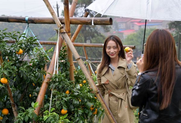 摘下柑橘也要拍下美照。长江日报记者刘斌 摄