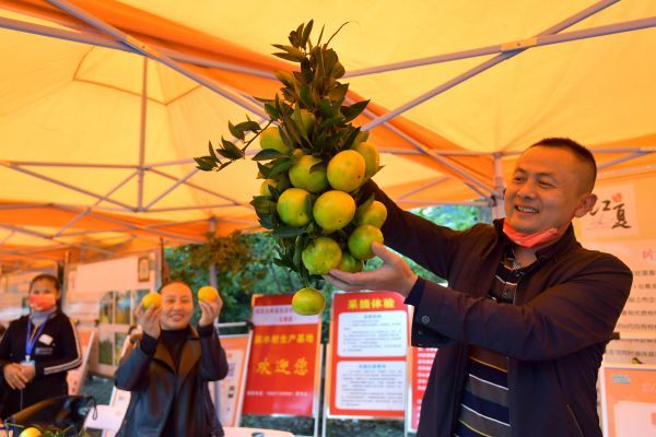 不仅柑橘吃得开心,从本地养的乌鸡、鸭子、鹅,到自家种的黄瓜、红薯、地瓜,再到一筐筐土鸡蛋和一罐罐腌好的辣椒,江夏宁港的农产品与特色风味都成为现场市民游客要带回家的“心头好”。一旁的武汉天依蓝生态农业有限公司负责人罗志成一遍介绍着自家的泉水柑,一边还分享起了江夏的秋季玩法,“来到宁港,到青龙山环线吸吸氧,再来农庄里吃吃地道农家饭,最后再把好吃的江夏柑橘亲手摘下来带回家,这么玩一天舒服得很。”