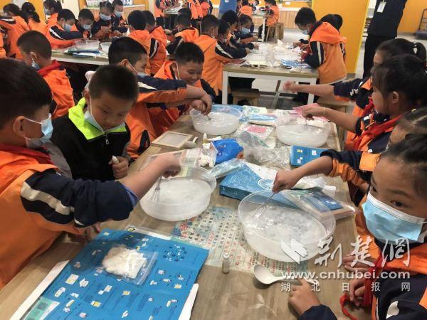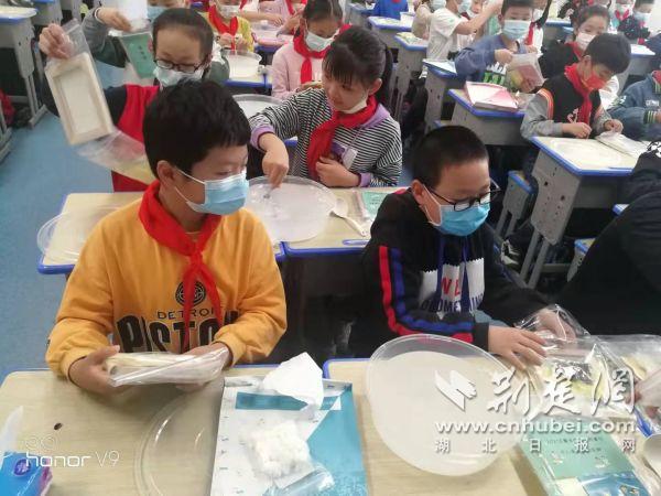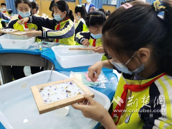 课后托管时段,江夏区文化路小学的孩子们学习手工造纸。(通讯员罗翊宁 摄)