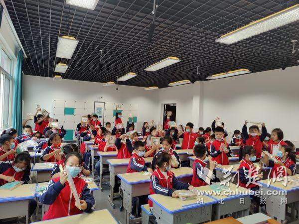 江夏区东湖路学校学生展示自己做的纸。(通讯员罗翊宁 摄)