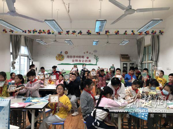 江夏区纸坊街胜利小学学生展示作品。(通讯员罗翊宁 摄)