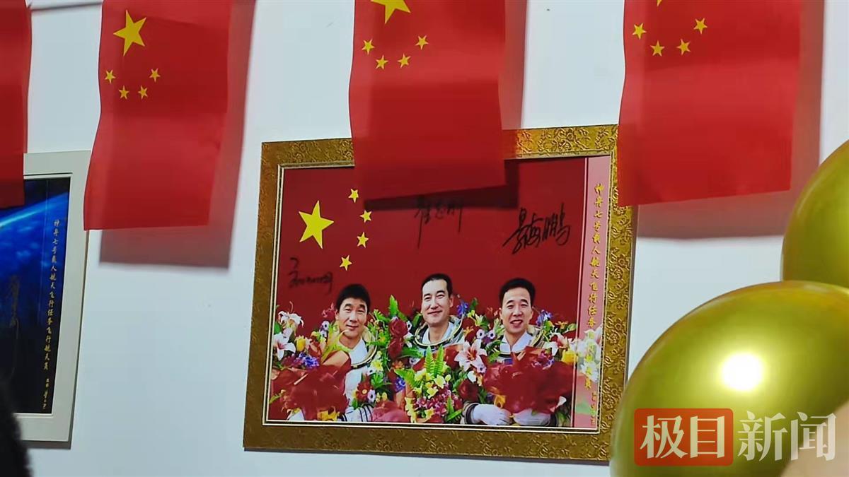 2008年,神舟七号载人飞船升空,家人们在家中的老院观看发射直播。这一次神舟十三号载人飞船发射,集中观看发射直播的地点定在了翟志刚的三姐翟凤兰家。这两天翟凤兰一直忙前忙后,装饰家里、接待来访的亲朋好友和媒体记者。翟凤兰家住四楼,房子不大,这两天人来人往,很是热闹。翟凤兰为这次观看神舟十三号发射直播花了很多心思,她买了彩色气球等装饰品装饰屋内屋外,还特意为每一位来访的亲朋好友和媒体朋友准备了写有“我爱你,中国”字样的中国红颜色的口罩。“大家一起带着红色口罩看直播,特别喜庆。”翟凤兰说。客厅的墙上贴着弟弟翟志刚“神七”出舱挥舞国旗的照片,还有弟弟和刘伯明、景海鹏的签名合影。