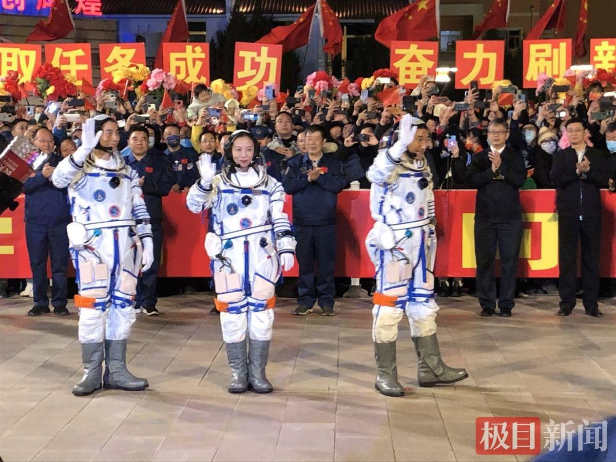 浩瀚星空,飞天逐梦,中国航天员再次出征探苍穹。10月15日晚9时40分许,神舟十三号航天员出征仪式在酒泉卫星发射中心问天阁前的圆梦园广场举行,极目新闻记者在现场见证了这一全球瞩目的时刻。