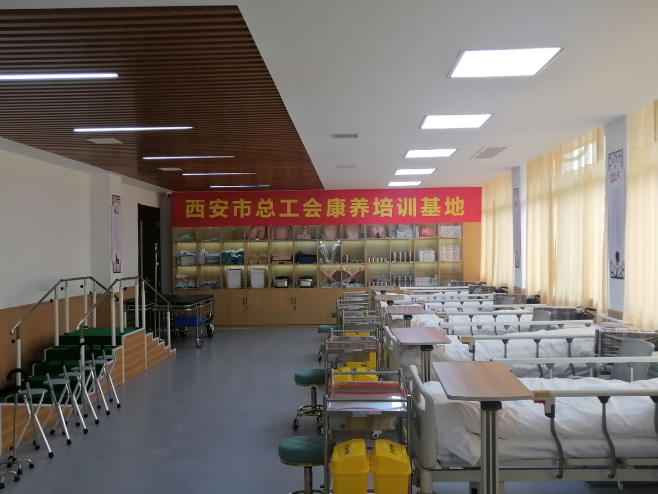 西安市总以西安市职工大学为主体,联合西安工会医院老年护理院、西安市总工会中顺家政服务公司,对三个单位进行调整改造、合理布局,建立“招、培、训、评、用”一体化的西安市总康养基地。第二期培训班共招收学员90余名,培训课程按照人社部门养老护理员职业技能标准设置,分为养老护理基础知识、生活照料、康复护理、心理护理方面,共120个课时,理论授课、实践操作、实训体验同步进行。全员自开班之日起至10月29日脱产学习15天,基地统一提供免费食宿、学习教材用品、教学实训实习等。