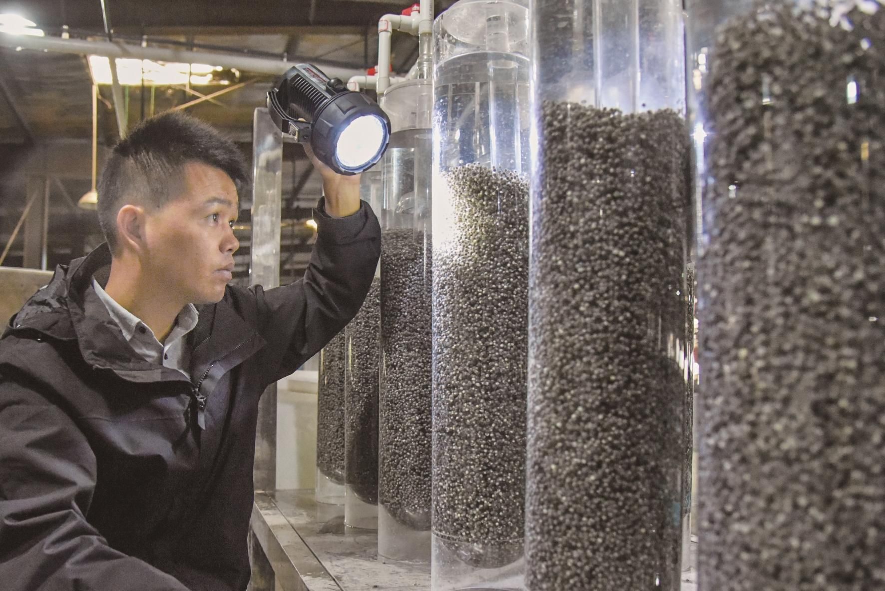 记者在中华鲟繁育车间看到,第二批约20万枚中华鲟受精卵正在孵化之中,近日就会孵化出膜。
