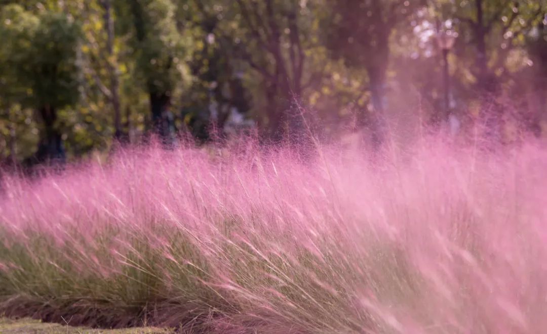 用粉黛乱子草来形容秋天,就十分合适:远远看去像一团粉色的棉花糖,走近一些,又如同轻盈的缦纱随风摇曳,温柔至极。