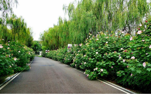 同样以木芙蓉为园花的,还有经开区的汤湖公园,该园里的芙蓉园内,栽植有白芙蓉、红芙蓉、黄芙蓉、鸳鸯芙蓉、醉芙蓉、七星芙蓉等16个品种,共有木芙蓉1500余株。