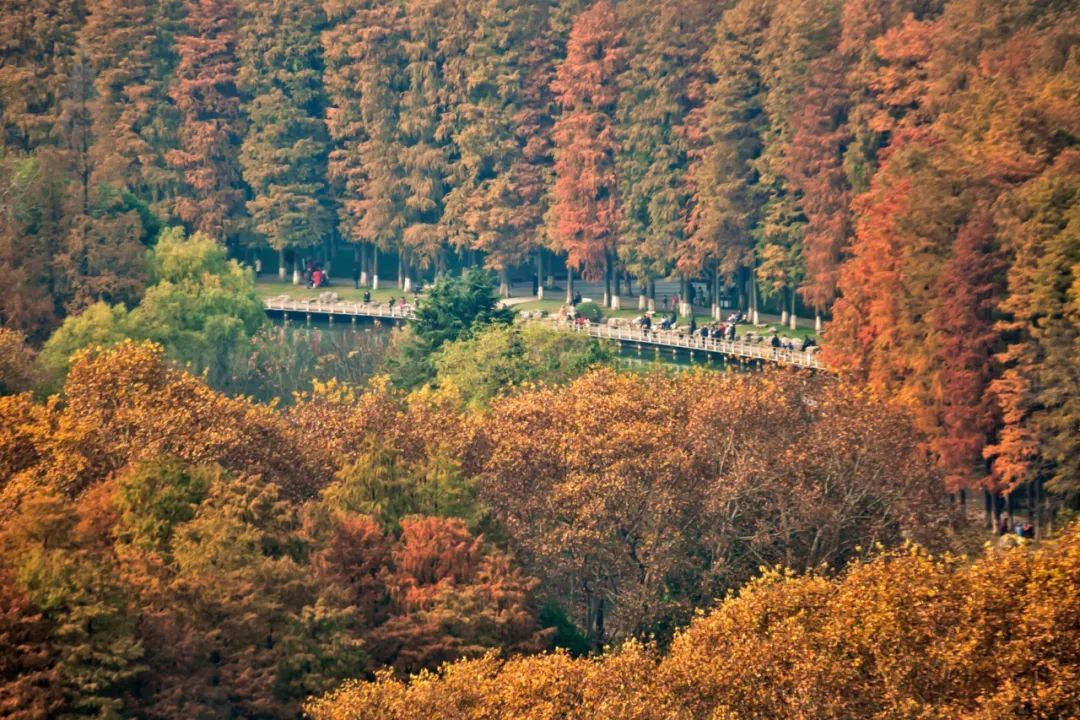 如果秋天看得见,那一定是水杉林的模样。先是由绿变黄,再由黄转红,秋意越浓,颜色越深,仿佛秋天在缓慢生长。