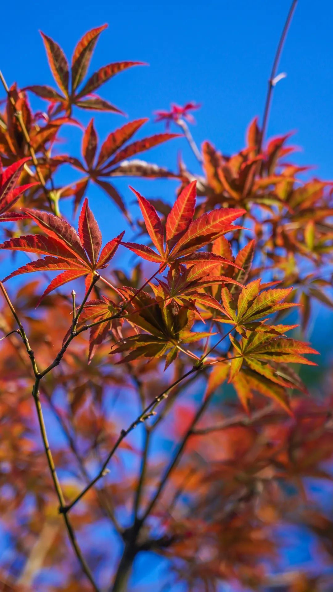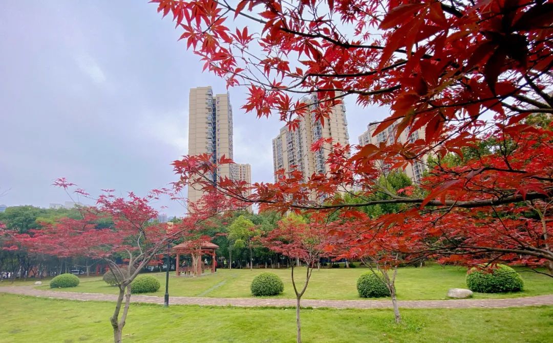 红枫是街头或公园最出圈的秋色,那一抹红,实在抢眼。不管是街头的绿地,还是公园的小景中,只要点缀几株红枫, 就增添了许些别致的风味。