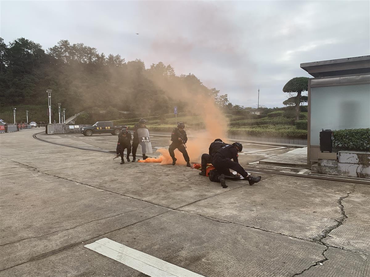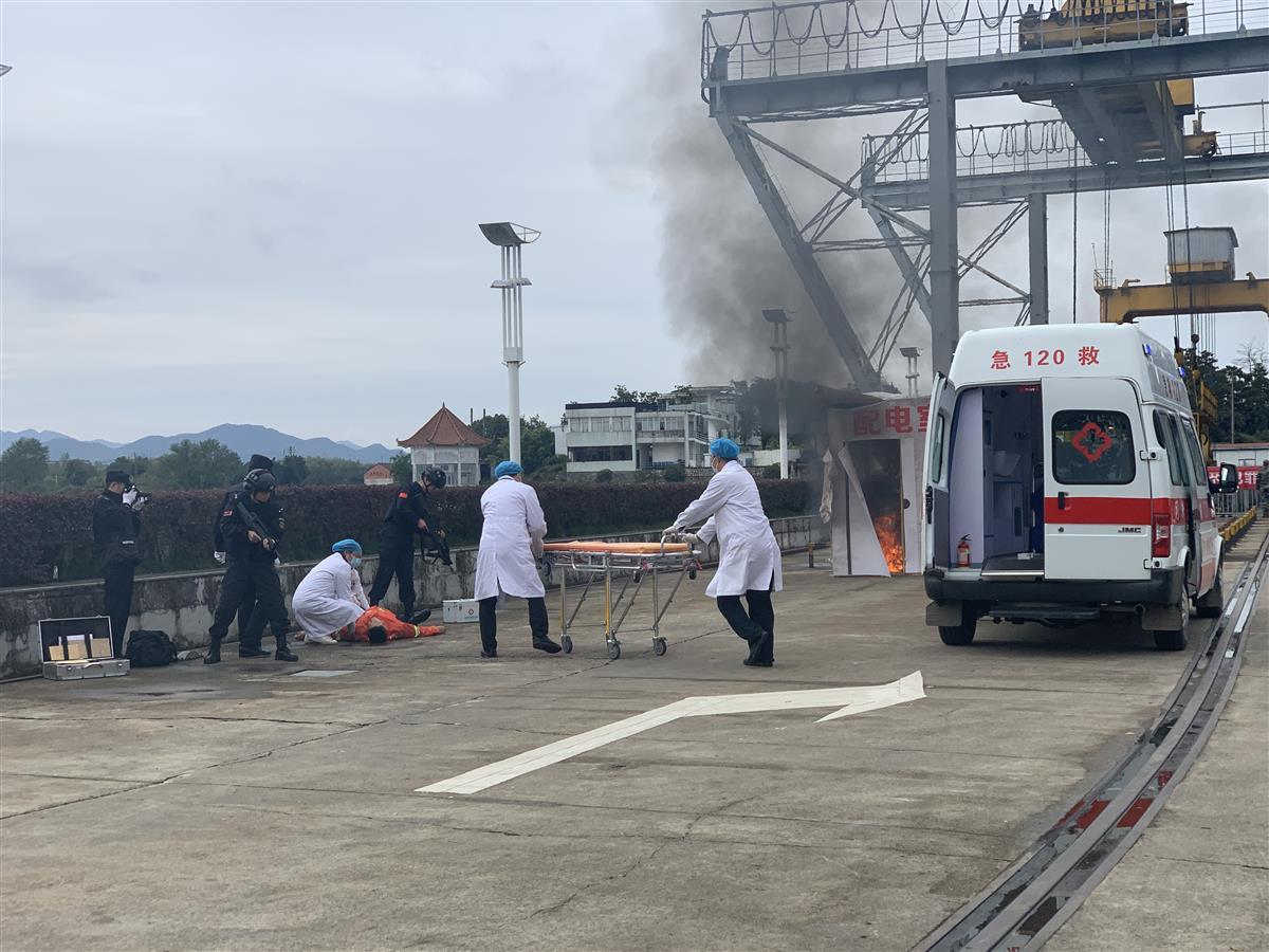 为进一步提升公安机关防控重大风险、防范和应对各类暴恐事件的应急处置能力,10月18日上午,由赤壁市反恐办协调组织赤壁市公安局、长江水利委员会陆水实验枢纽管理局、赤壁市陆水湖管委会、赤壁市卫健局、赤壁市消防救援大队等单位共200余人,联合开展反恐防暴应急处突实战模拟演练。