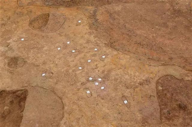 铜绿山岩阴山遗址炉子旁发现古代生产者赤足印迹35枚。