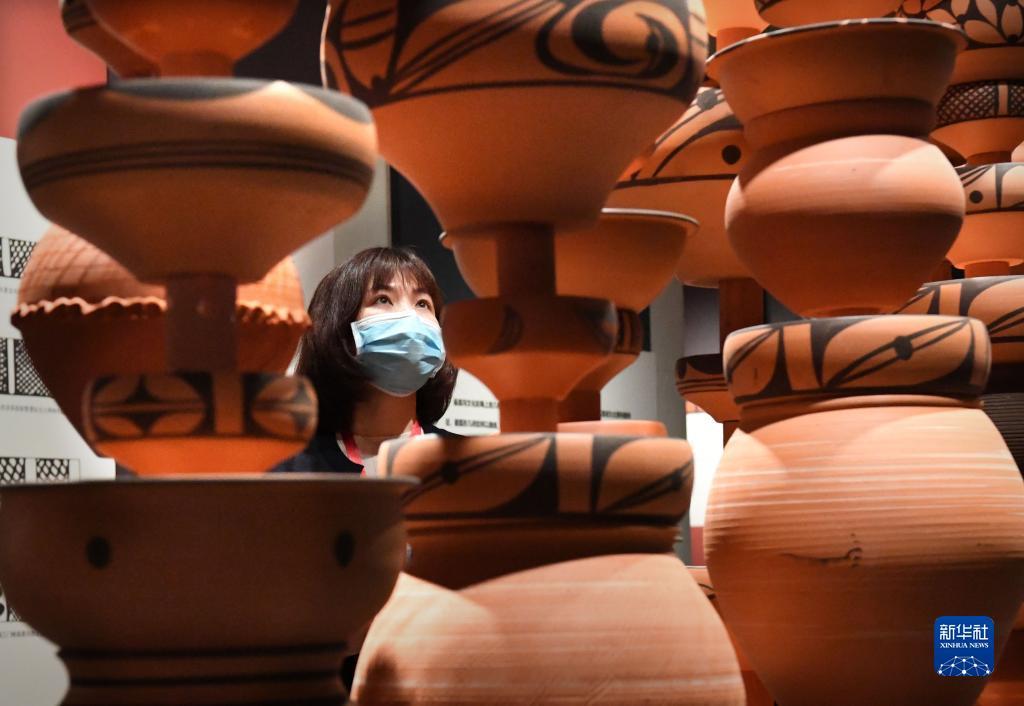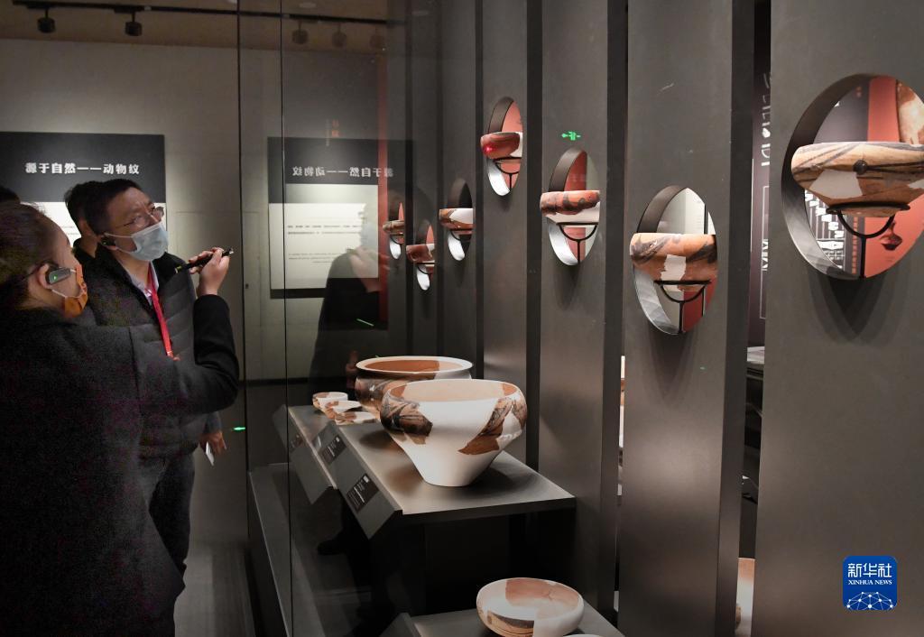 10月17日,参观者在庙底沟仰韶文化博物馆内拍摄展品。