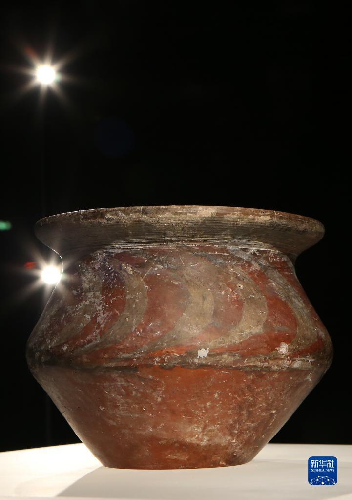 这是10月17日在庙底沟仰韶文化博物馆内拍摄的月牙纹彩陶罐。