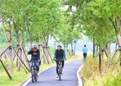 10月18日,天气阴沉。金银湖绿道,不少市民前来骑行、跑步。