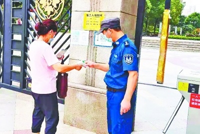 戴正武在小区值班时,严格认真。