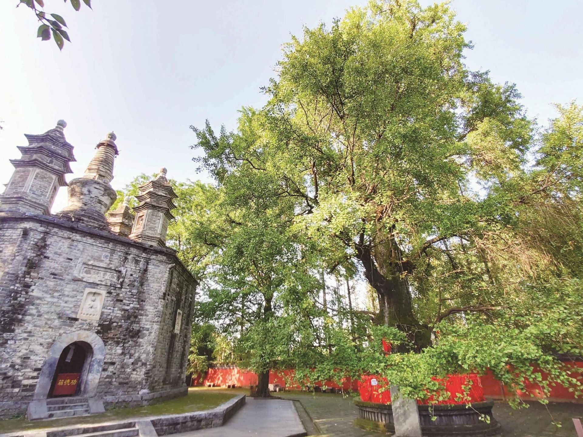 襄阳古隆中景区广德寺多宝佛塔院内,几棵古树更添沧桑感。其中一棵树龄达1500余年的古银杏,也入选了湖北十大最美古树。