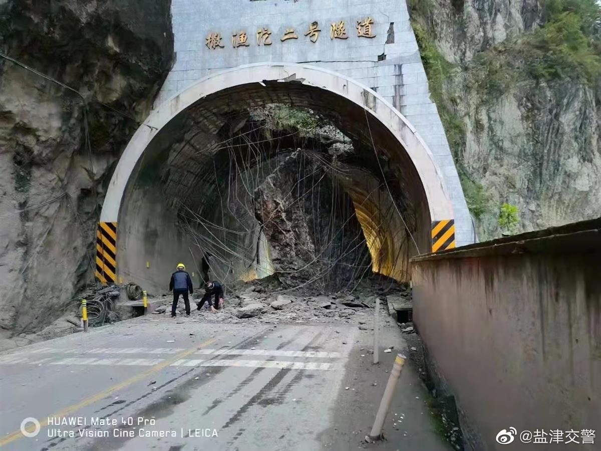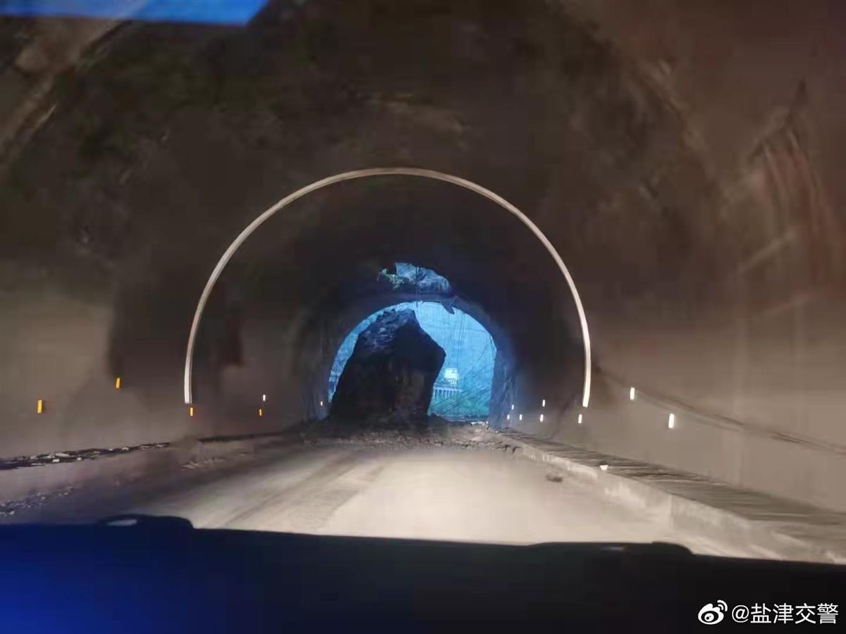 接报警后,盐津交警第一时间赶赴现场,对该路段实行临时交通管制,请过往车辆及行人严格服从现场交警的指挥,依次排队或绕行通过。绕行路线:渝昆高速(豆沙关至普洱,反向同理),目前,盐津公路分局正在组织人员和施工机械赶往现场进行勘查抢通。因隧道口被砸穿,山体还在持续落石,暂不具备施工条件,具体通行时间待定。