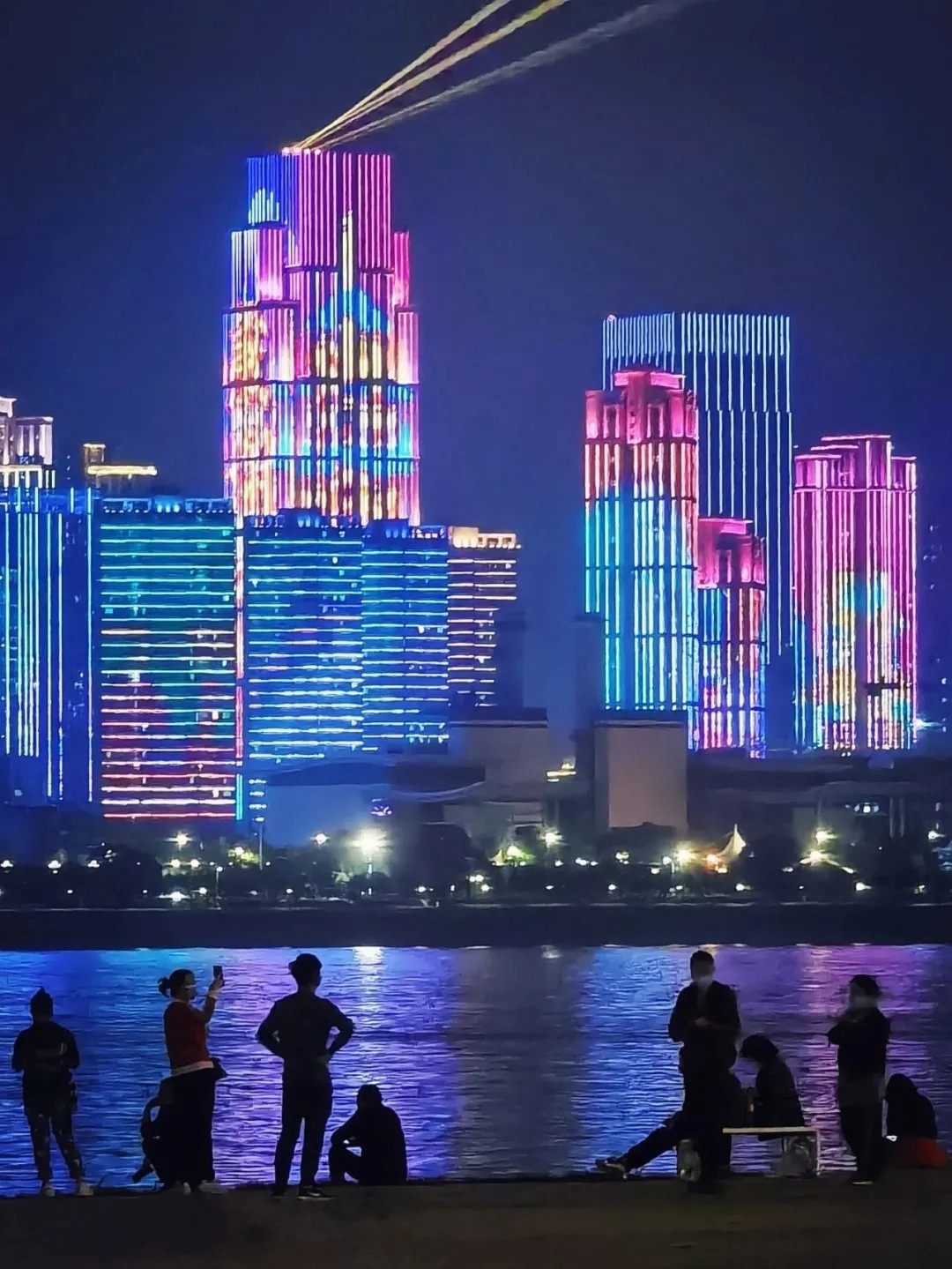 江滩边可欣赏炫目的长江灯光秀。图/武汉市文化和旅游局