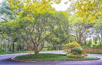 这里树龄最大的一株桂花已经200岁,生长在梅岭礼堂三岔路口。记者看到,这株树树形也十分好看,树枝优美地向四周舒展,像盆景一样美观。陈思敏告诉记者,由于它生长在路中间,是一处景观节点,所以他们注重树形塑造。去年,对内膛枝进行了掏枝修剪,让其看起来十分通透,还对树身的几处小树洞进行了精心修补。“但由于周边大树太多,遮挡了阳光,这株树目前开花不多。”陈思敏惋惜地说。