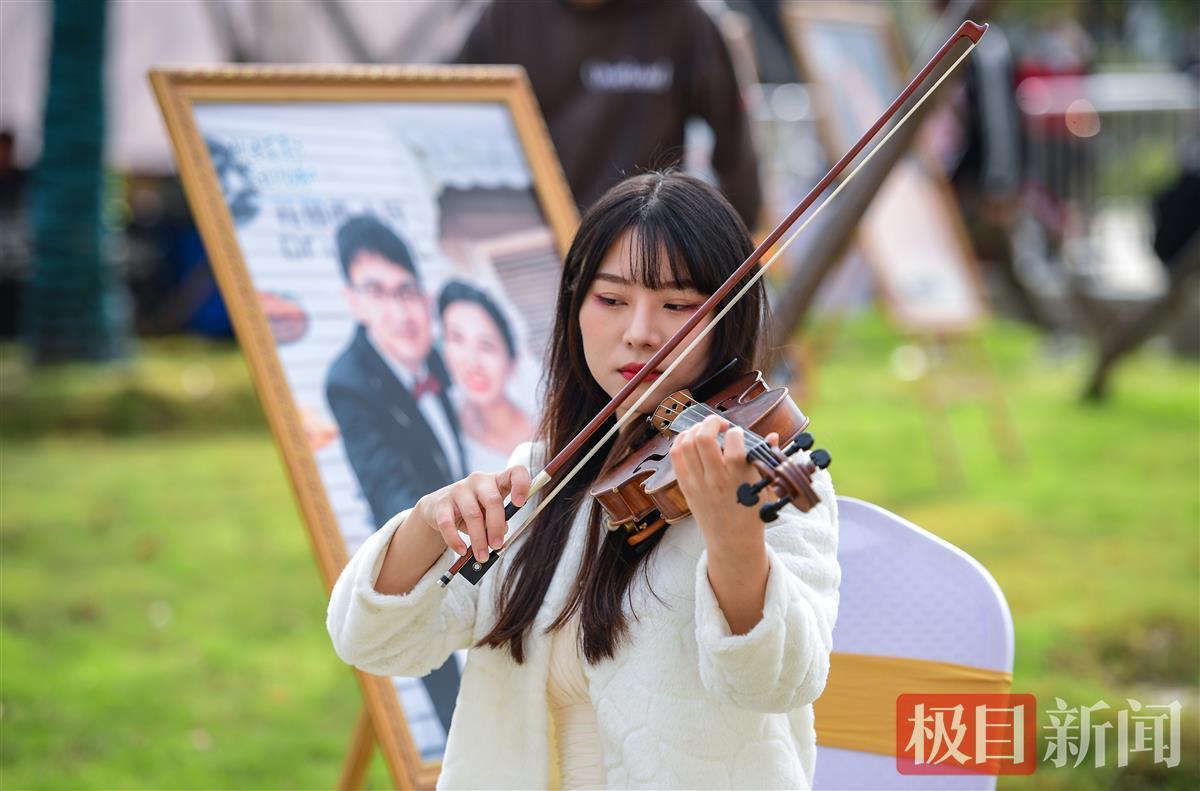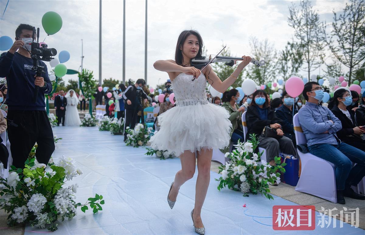10月21日下午,武汉协和医院第五届集体婚礼现场,4位美女组成提琴乐队,悦耳的琴声和精彩的表演,成为现场的亮点。