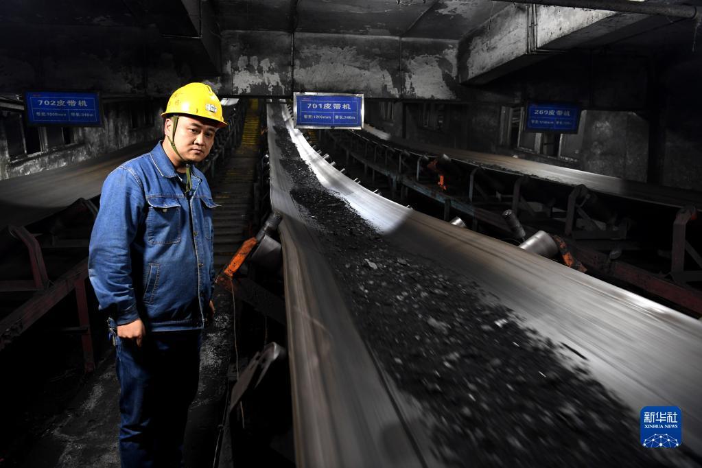 10月20日,安徽省宿州市钱营孜煤矿工人传输开采的电煤。新华社记者刘军喜摄