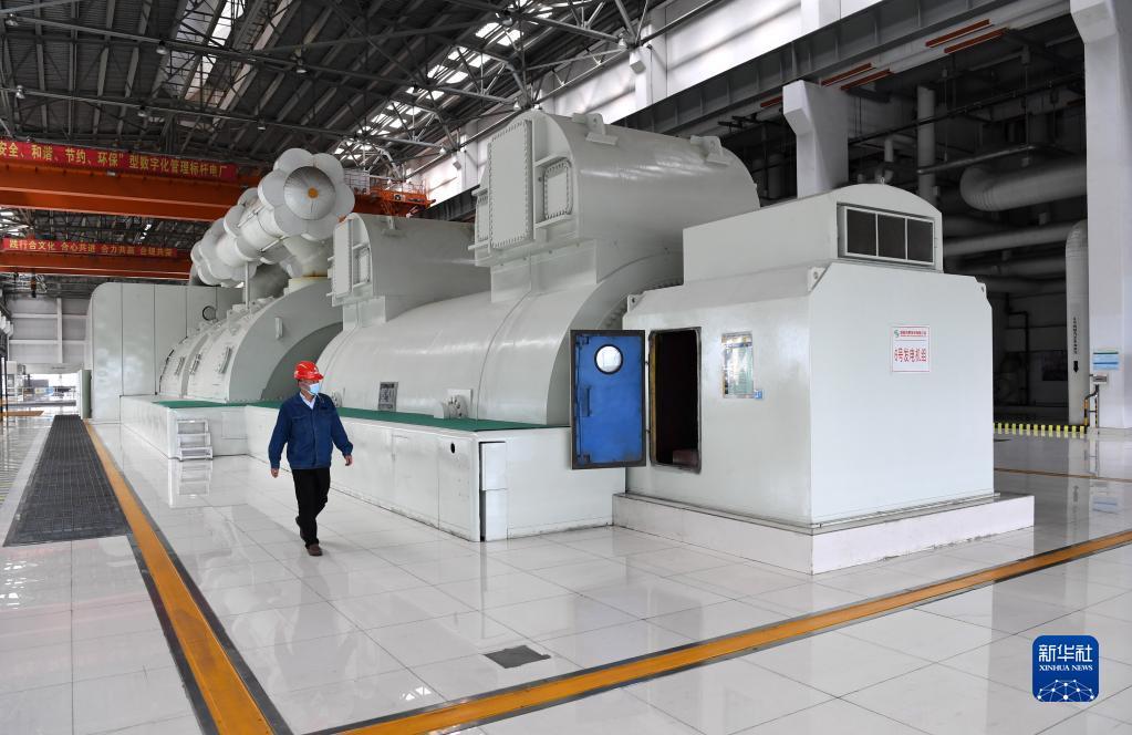 10月21日,皖能合肥发电有限公司工作人员经过发电机组。新华社记者刘军喜摄