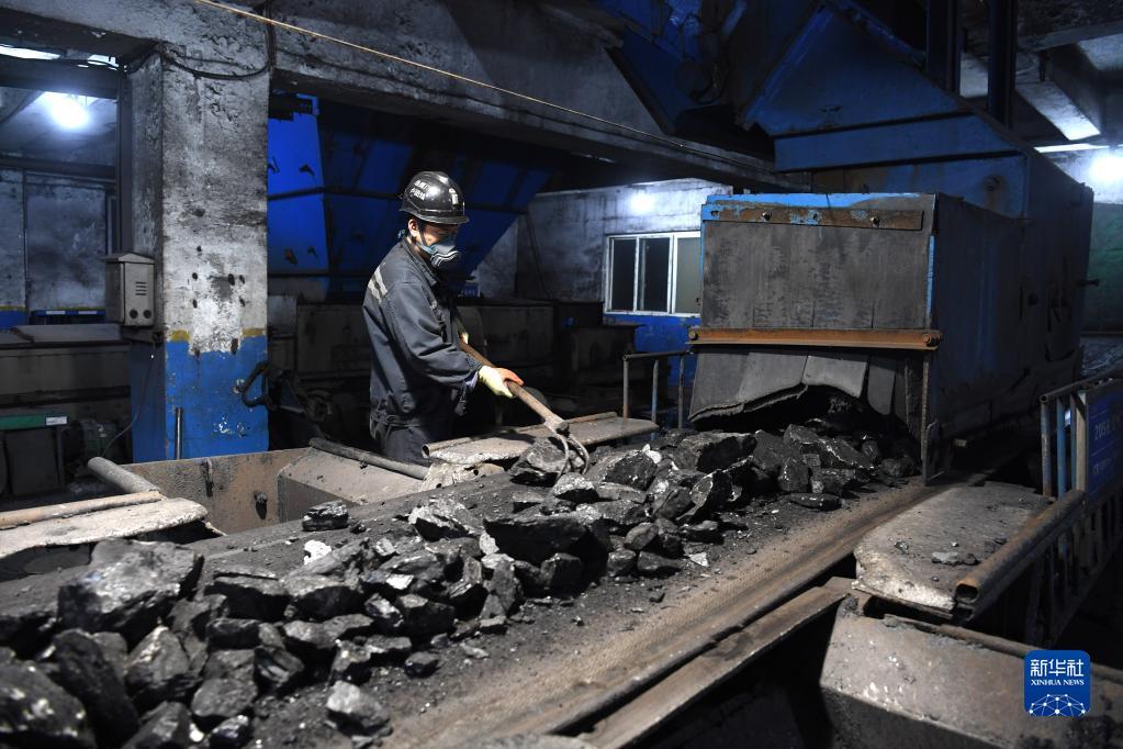 10月20日,安徽省宿州市钱营孜煤矿工人在筛分电煤。新华社记者韩旭摄