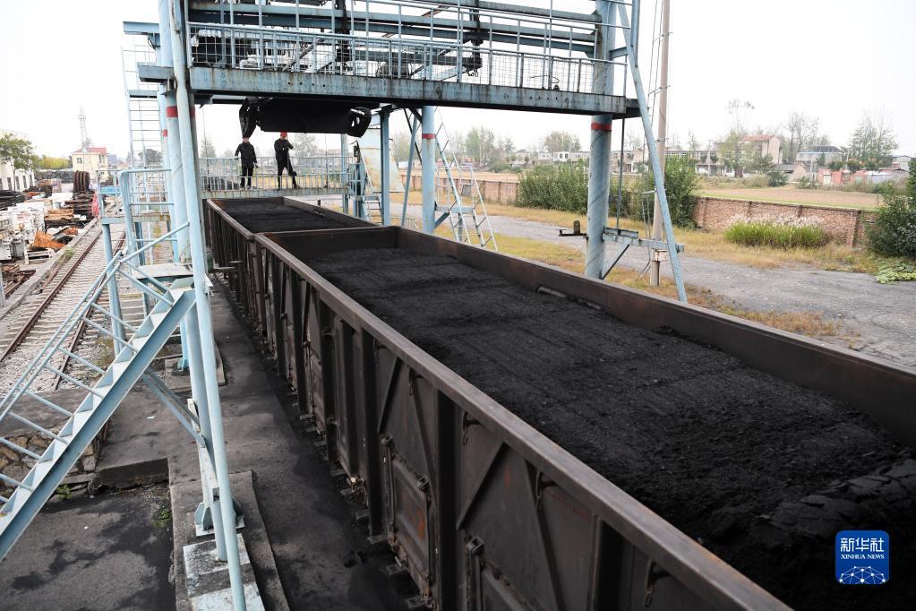 10月20日,安徽省宿州市钱营孜煤矿工作人员在装运准备外运的电煤。新华社记者刘军喜摄