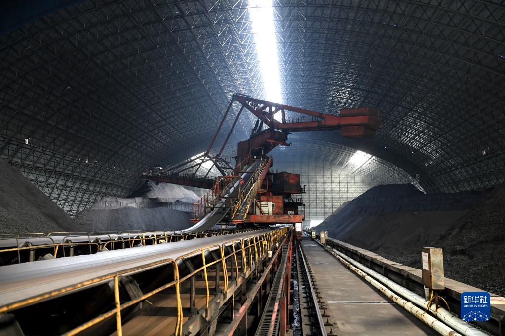 10月20日,在安徽省宿州市钱营孜煤矿,电煤通过传送带入仓等待外运。新华社记者刘军喜摄
