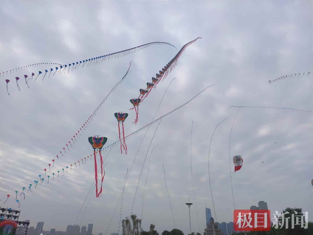 极目新闻记者现场了解到,江岸区国际风筝节自2010年开始已经举办11届。本届风筝节为期2天,除风筝锦标赛与江岸民俗文化体验外,首次加入电竞元素,市民可在22日和23日前往汉口江滩三阳广场亲水平台共同参与。