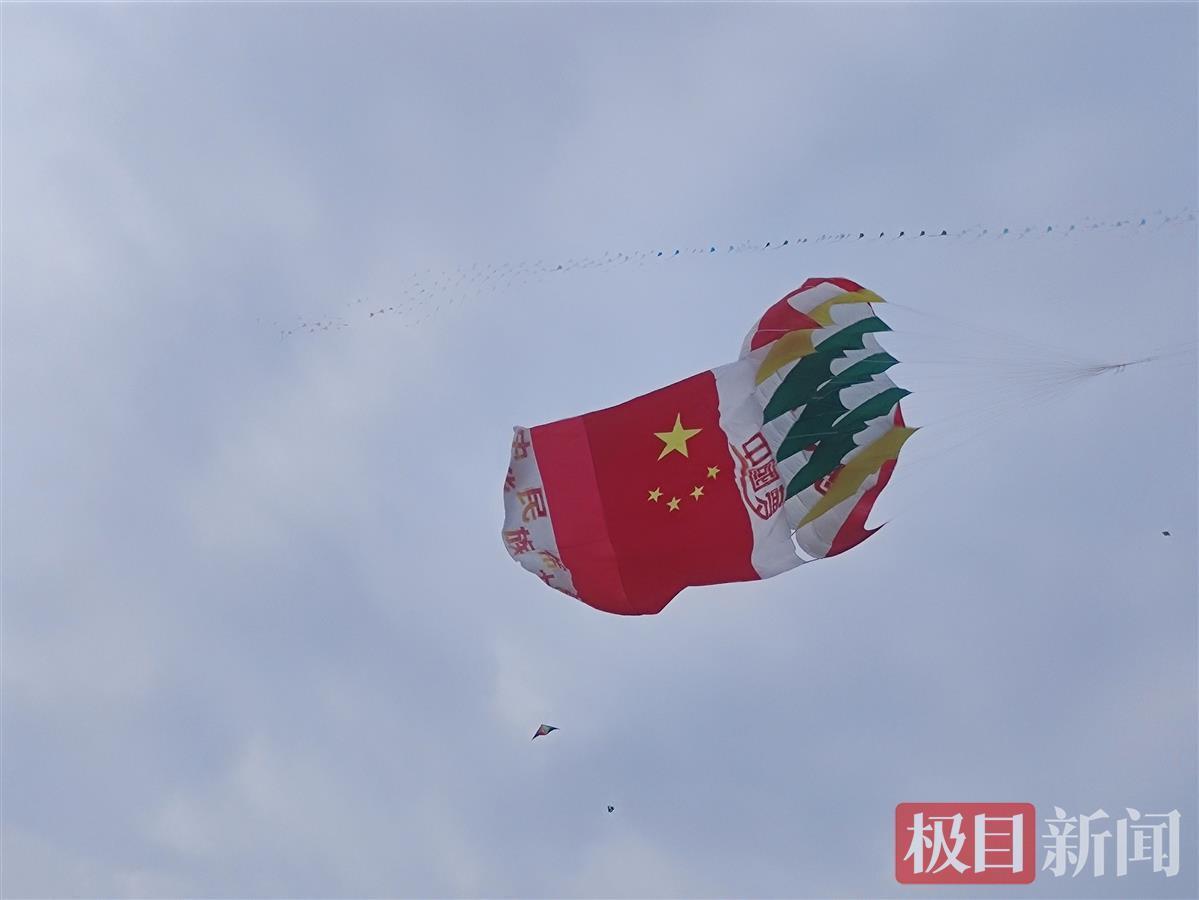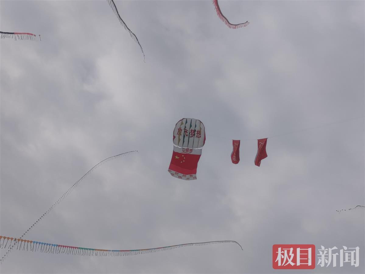 由武汉本土风筝大师李砚清亲手制作的“放飞梦想,庆祝中国共产党成立100周年”大型风筝,在众多风筝中别具一格,吸引了所有观赛者的目光。
