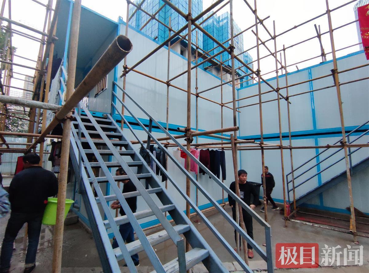 在施工项目东侧,记者步行50米左右,穿过一个低矮的小门,进入到一处农民工宿舍区。