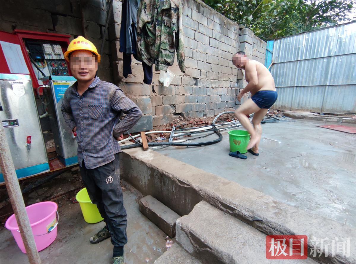 记者淌过湿滑的地面,迎面就看到一名农民工穿着裤衩站在空地上,用毛巾在面盆中蘸着水,在身上擦拭,口中不断发出“吁吁”的哆嗦声。