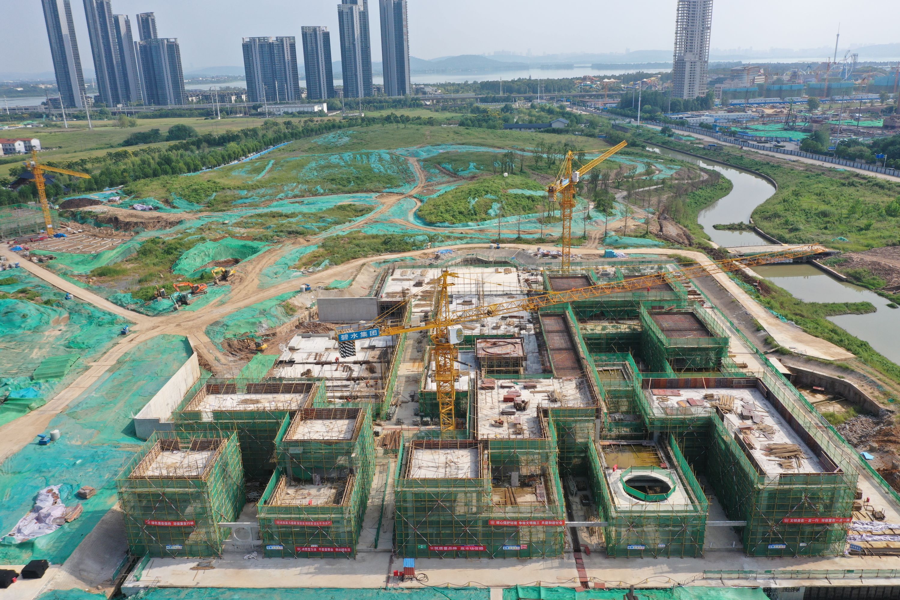 此外,作为东湖水环境提升工程中的子项目,湖滨花园调蓄池项目正在三班轮倒全力冲刺四季度。项目工地上,塔吊林立,机械轰鸣,一派繁忙景象。