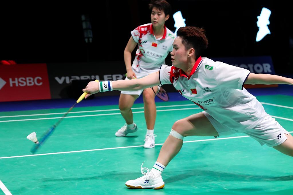 10月22日,杜玥/李汶妹(右)在比赛中。
