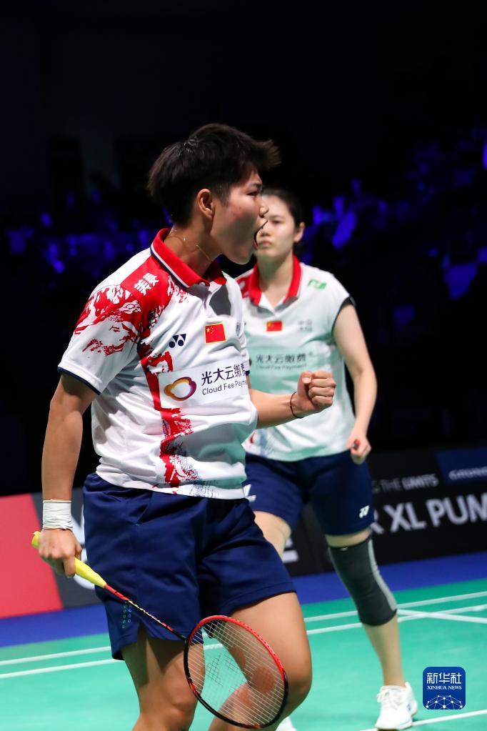 10月22日,黄东萍(右)/郑雨在比赛中庆祝得分。