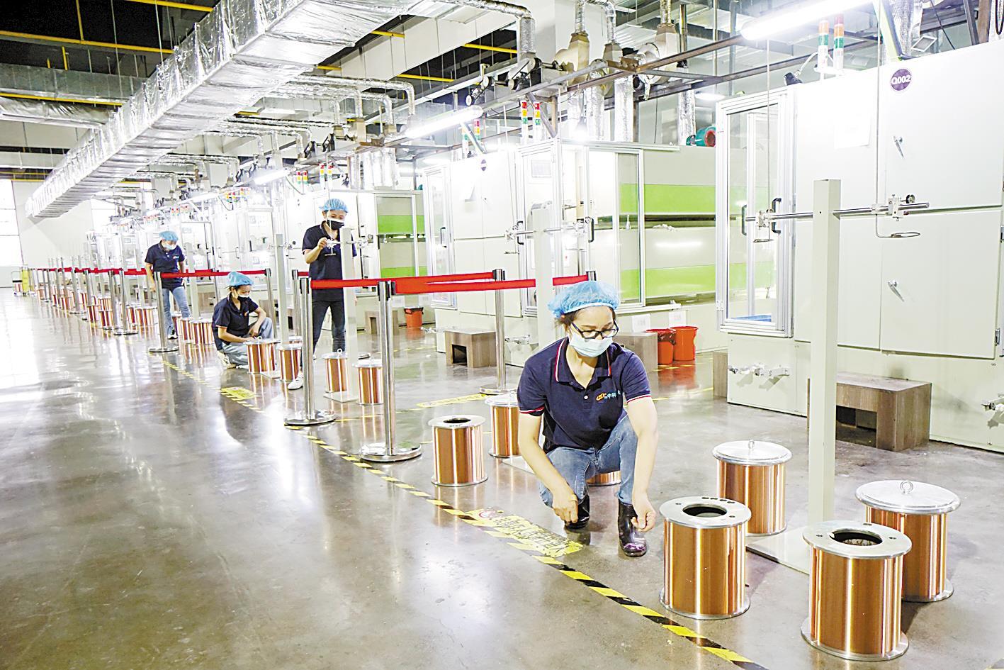 10月15日,咸宁高新区智能制造产业园,咸宁中科华冶新材料科技有限公司员工正在生产特种电磁线。这家智能机电产业新材料企业主要产品应用于物联网和无线充电领域。