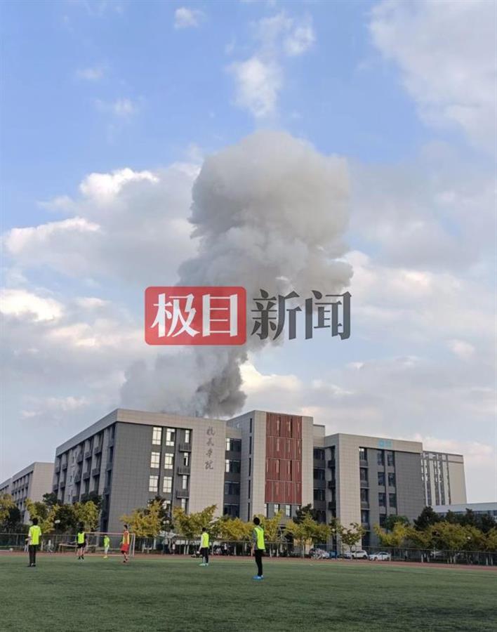 据现场视频图片显示,空中升腾起蘑菇云,伴随着噼噼啪啪的响声。另有图片显示,爆燃位于材料科学与技术学院一实验楼,事故发生后楼栋漆黑,室内仍可见到明火。另有图片显示有消防队员现场处置,有医护人员正在现场救治伤者。