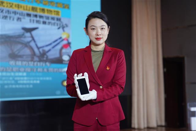 中山舰博物馆为本次宣讲准备了一件特殊的礼物——去年疫情期间该馆征集的甘如意返汉导航手机带到了宣讲现场,同学们现场感受了这件战疫物件的特殊含义。