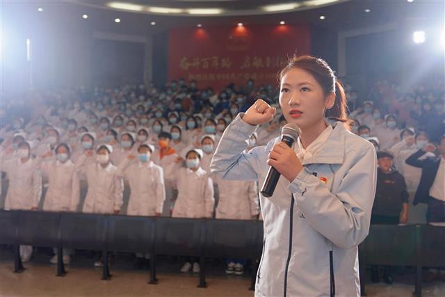 宣讲结束后,甘如意带领现场300名学生宣读医学生誓言,重温人民至上、生命至上的初心使命。