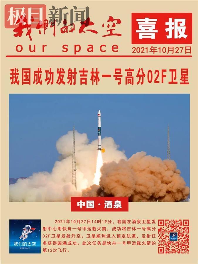10月27日14时19分,我国在酒泉卫星发射中心用快舟一号甲运载火箭,成功将吉林一号高分02F卫星发射升空。
