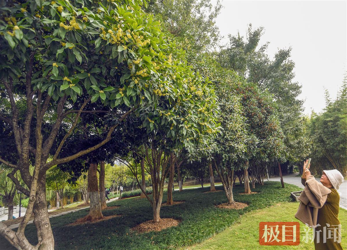 今年初秋武汉的高温推迟了桂花的花期,但前些时气温回升,在雨水配合下,江城数以万计的桂花树迅速绽放,“迟来的美好”让武汉满城桂香浮动。