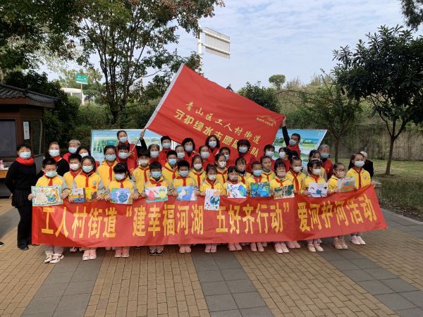青山区桥头小学学生参加了青康居社区在武丰闸湿地公园开展的爱河护河活动。(通讯员谭黎 供图)