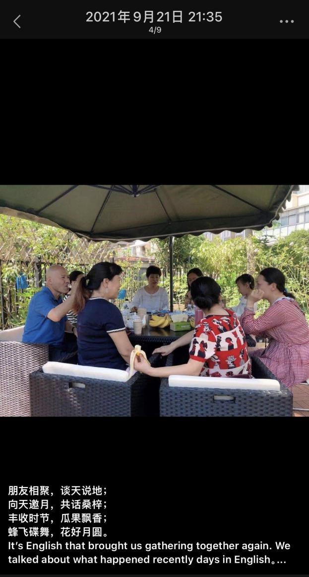 梁晨在朋友圈里发布与好友在院子里交流的图片。 梁晨 供图