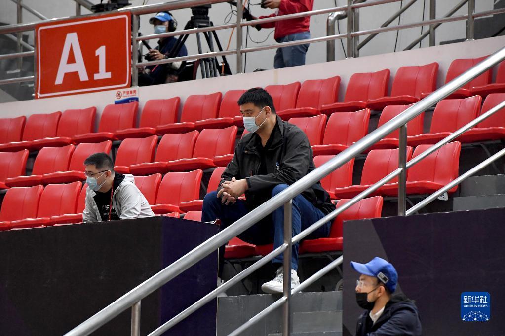 10月28日,中国篮协主席姚明(右二)在场边观赛。