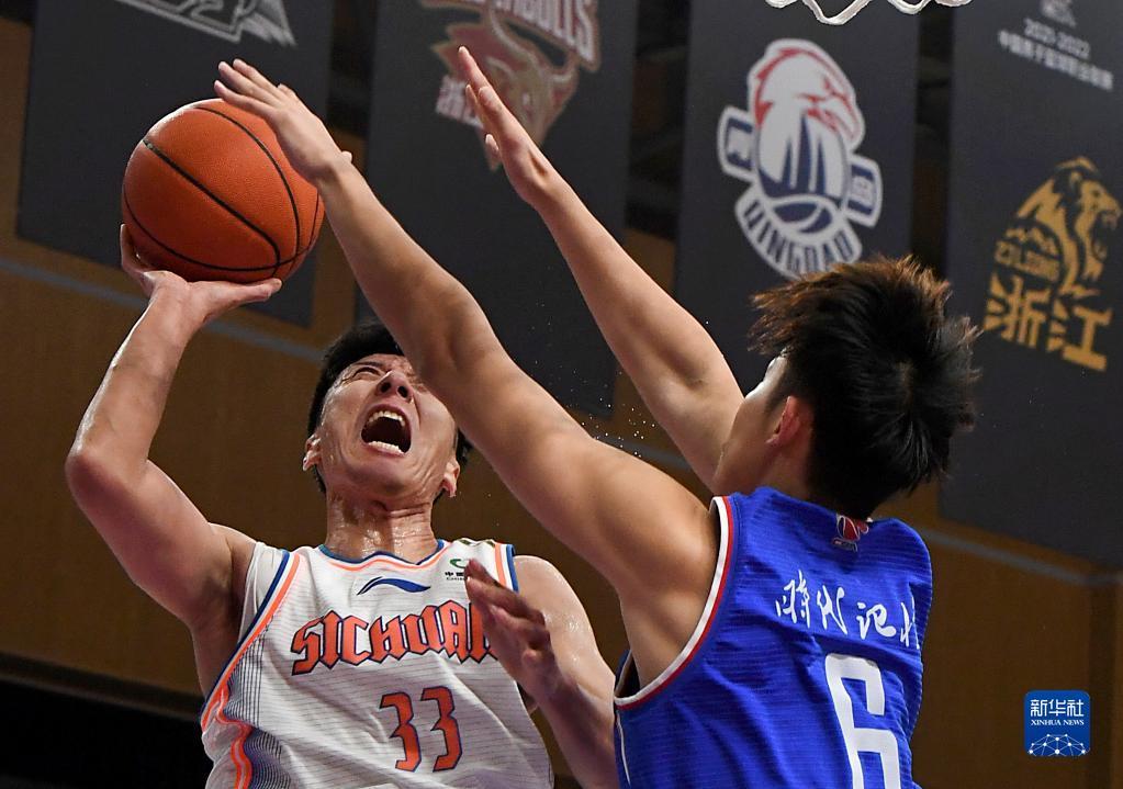 当日,在浙江诸暨进行的2021-2022赛季中国男子篮球职业联赛(CBA)第一阶段第六轮比赛中,四川金荣实业队以96比94战胜天津先行者队。