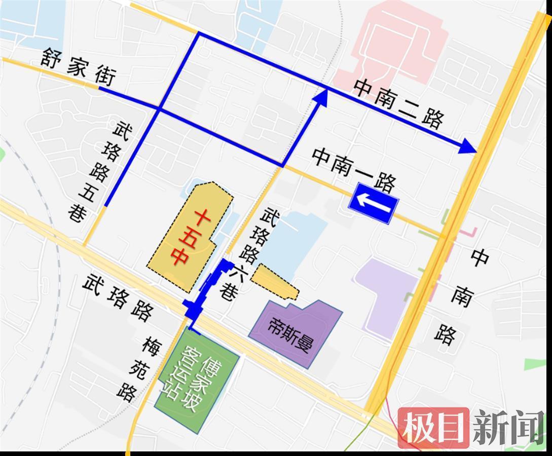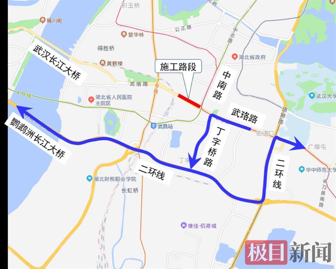 一、由西向东经中南一路去往中南路方向的车辆,可通过武珞路五巷、武珞路六巷绕行中南二路,再去往中南路。