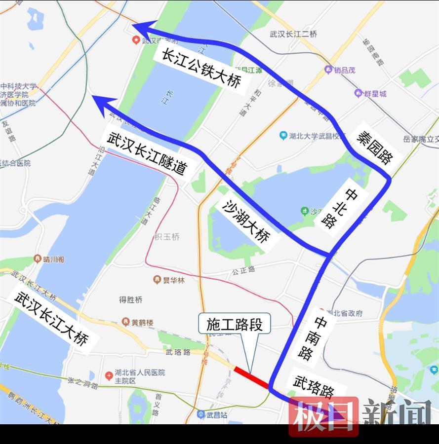 通过武珞路-长江大桥-江汉一桥往来武昌、汉口方向的车辆,可绕行长江隧道和公铁隧道。