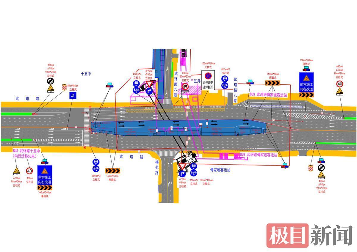 10月28日,极目新闻记者获悉,2021年10月30日至2023年6月30日,武汉轨道交通12号线十五中站主体工程施工,施工期间,中南一路(中南路至武珞路六巷)实行机动车由东向西(中南路往武珞路六巷方向)单向通行。目前武珞路该路段双向12车道将减少为双向10车道,通行能力下降。占道施工给出行带来不便,敬请市民谅解。武汉交管部门给出绕行建议。